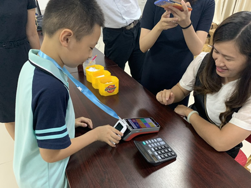 海南鲁迅中学学生使用数字人民币智慧学生证进行支付。中国工商银行海南省分行供图
