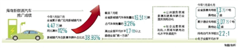 “到今年7月底,海南全省新能源汽车保有量已达16.51万辆,占汽车保有量的9.21%,在全国排名第二。”省工信厅新能源汽车发展与监察处处长徐涛说,海南新能源充电基础设施已基本覆盖了全省所有的高速公路服务区和行政村,充电设施基础网络基本建成。