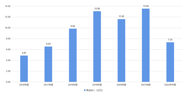 2021年,葫芦娃药业实现营收13.54亿元,同比增长16.53%,六年间营业收入增长近9亿元,六年复合增长率为10.77%;2022年上半年,公司实现营收7.33亿元,相比去年同期增长16.2%。