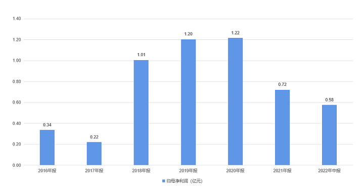 净利润方面,自2018年葫芦娃药业净利润首次突破1亿元后,连续三年平稳增长。2021年,因公司战略性布局研发和销售,研发投入和营销网络建设投入大幅增加,净利润相应缩减至0.72亿元。2022年上半年,公司实现净利润0.58亿元,同比增长11%。