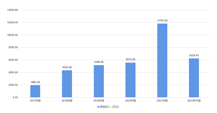 值得一提的是,葫芦娃药业近年来狠抓创新研发,研发投入持续加码,为企业未来成长蓄力。2021年,公司研发投入1.18亿元,同比增长1.11倍,占总营收比例8.71%。2022年上半年,公司研发投入持续攀升,半年已投入6225.43万元,同比增长52.54%,超过2020年全年研发支出。