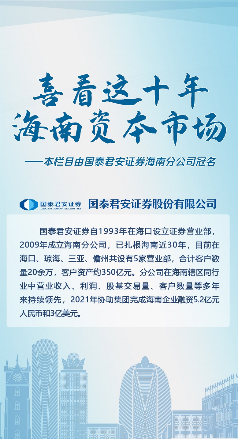 十年奋进不止,十年高质量发展。海财经·证券导报联合海南证券期货业协会、海南上市公司协会共同推出由国泰君安证券海南公司冠名的“喜看这十年·海南资本市场”栏目,全面展示海南省上市公司十年发展新成就,探索海南自由贸易港建设背景下的发展新机遇。