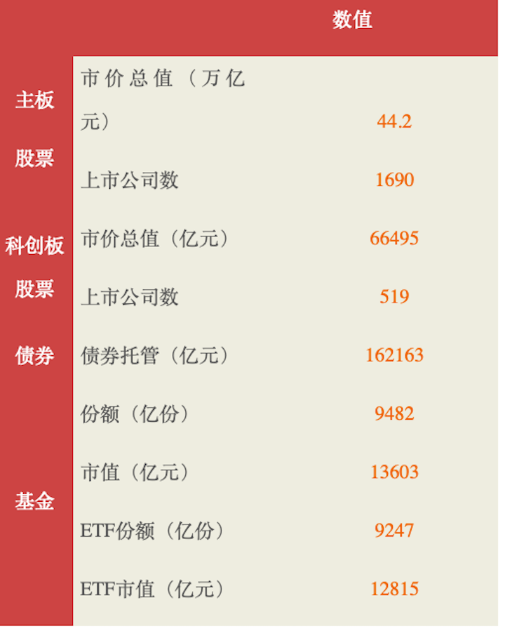 规模方面,主板上市公司1690家,市价总值44.2万亿元;科创板上市公司519家,市价总值66495亿元。截至本周四,主板融资融券余额6734.6亿元。