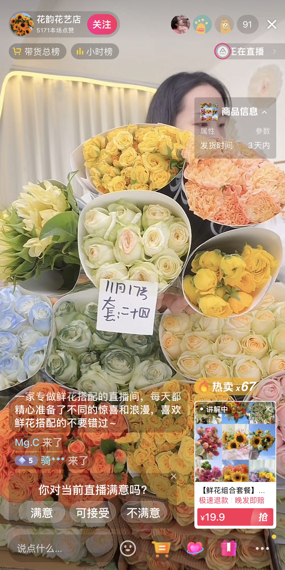 抖音鲜花直播火热。