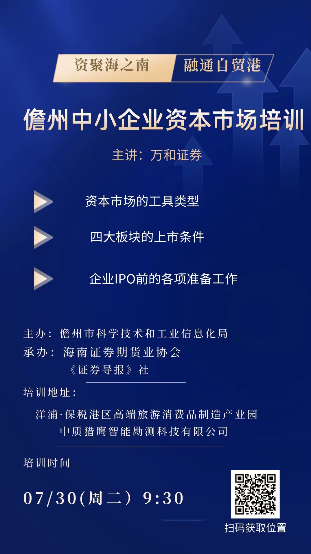 资本市场主题培训会共邀请儋州市规上企业、 准规上企业、创新型企业、高新技术企业、专精特新企业及“小升规”企业约30家,由海南证券期货业协会会长单位万和证券进行资本市场相关业务培训。内容包含:资本市场的工具类型、四大板块的上市条件、企业IPO前的各项准备工作等。