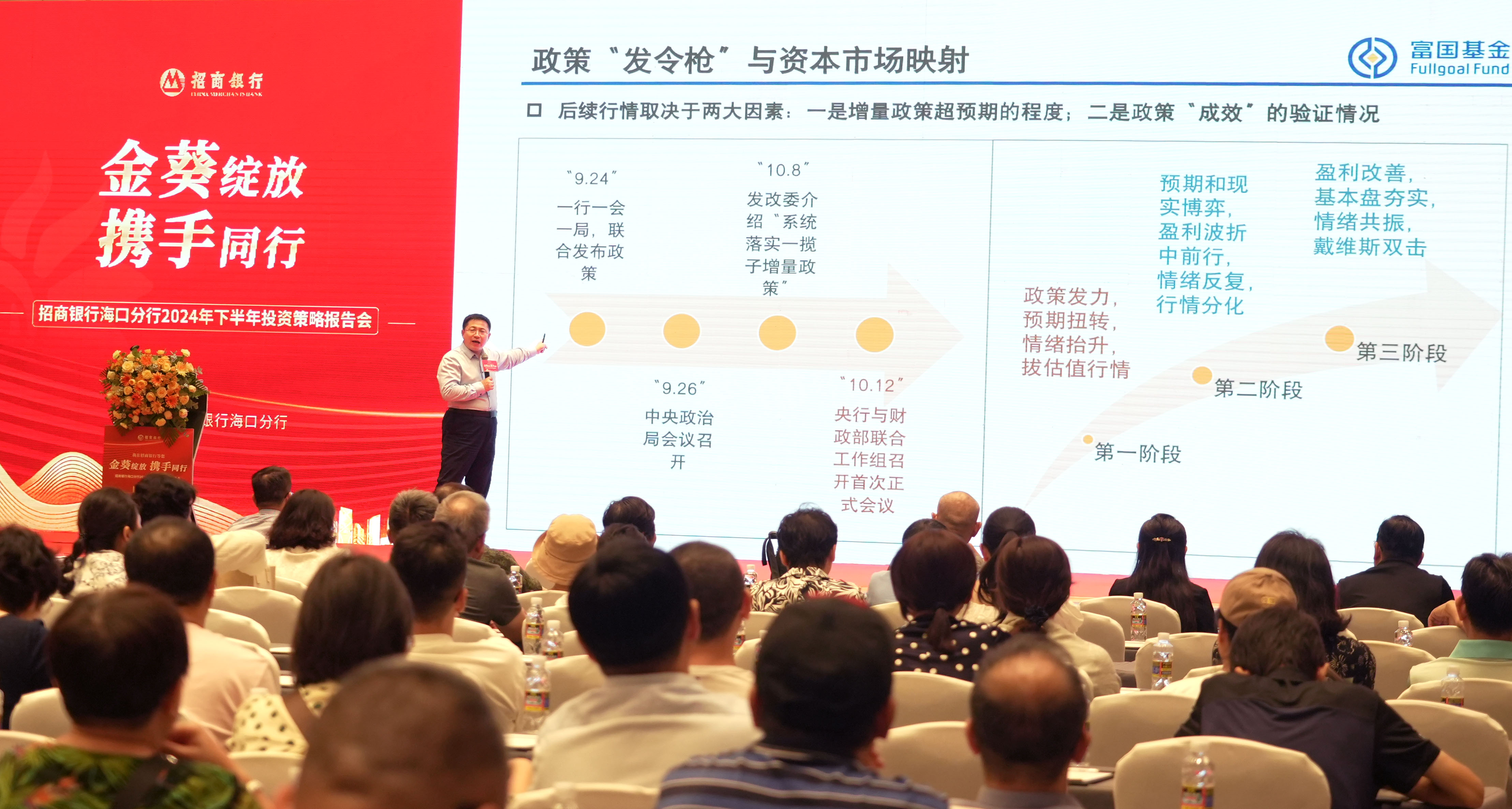 海财经·证券导报10月13日讯 (记者 郭静瑜)如何看待2024年下半年中国经济增长前景?在当下低利率、净值化的时代,如何做好资产配置?围绕投资者们非常关注的这些投资大事,10月12日,招商银行海口分行举办“金葵绽放 携手同行”2024年下半年投资策略报告会,旨在为客户提供权威、前瞻性的投资指导,帮助他们更好地把握投资趋势变化,实现财富的稳健增长。