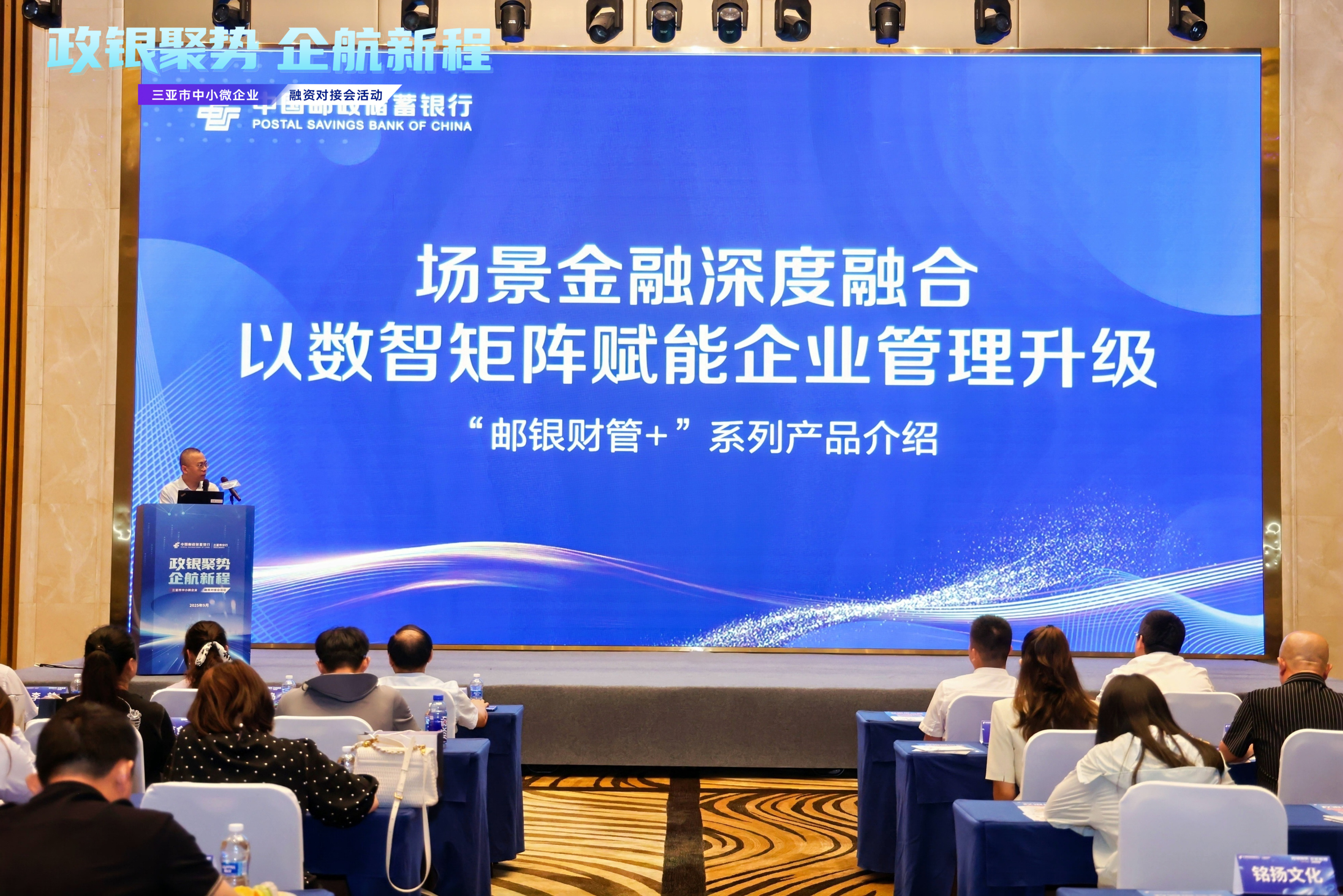 在三亚市政府与邮储银行联合举办的政银企对接会上,邮储银行海南省分行工作人员介绍金融服务方案。邮储银行海南省分行供图