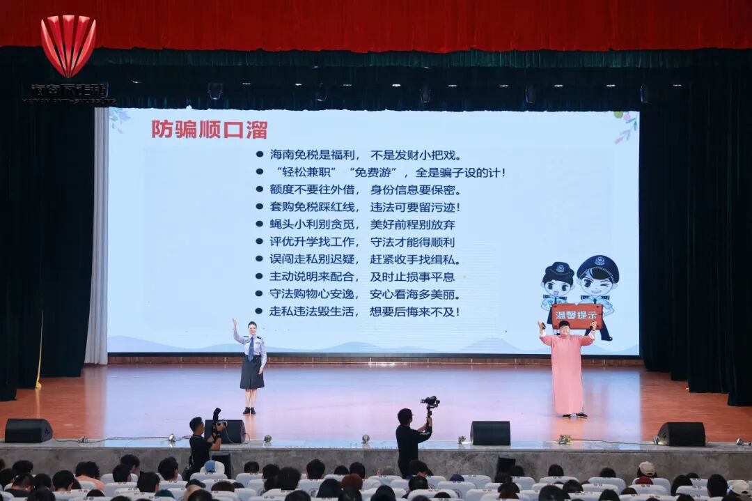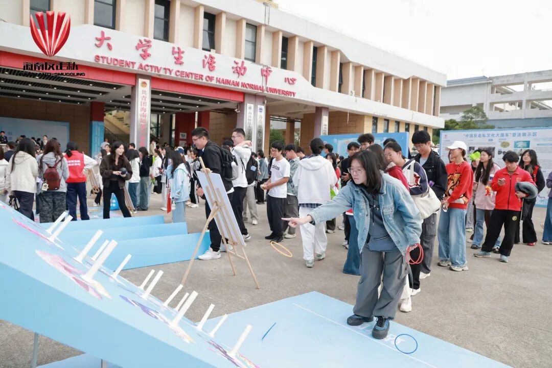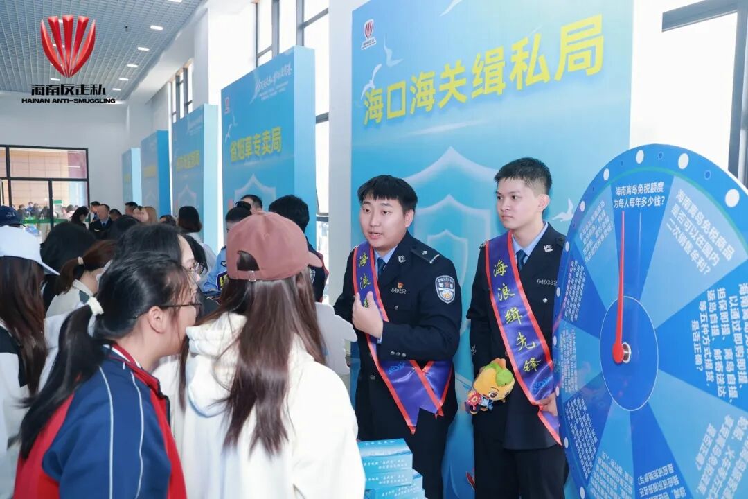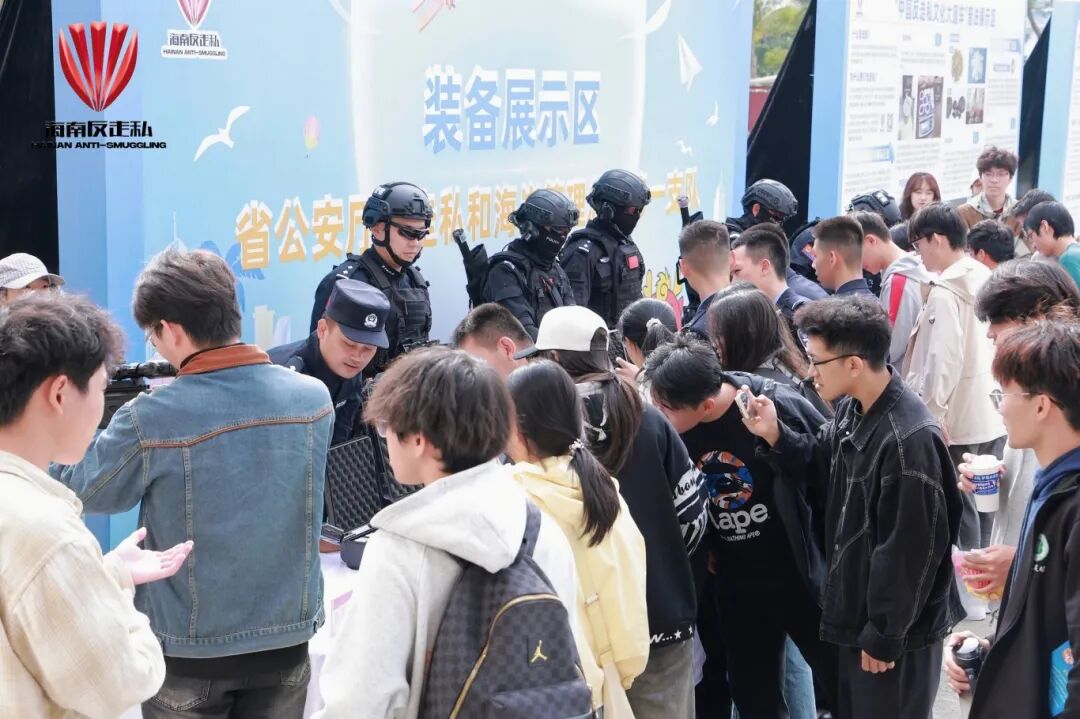 此外,在活动现场还设有普法展示区与联合普法宣传“摊位”。省教育厅、省司法厅、海口海关、海口海关缉私局、省市场监管局、省烟草专卖局、省邮政管理局、海南海警局等单位部门人员通过互动宣讲和发放海报、宣传册等多种形式,向广大师生普及反走私知识,教育引导师生争做反走私宣传的“先行者”、普法的“传播者”、学法守法的“践行者”,让反走私普法宣传从“单点发力”迈向“全域联动”,筑牢校园青春反走私防线。