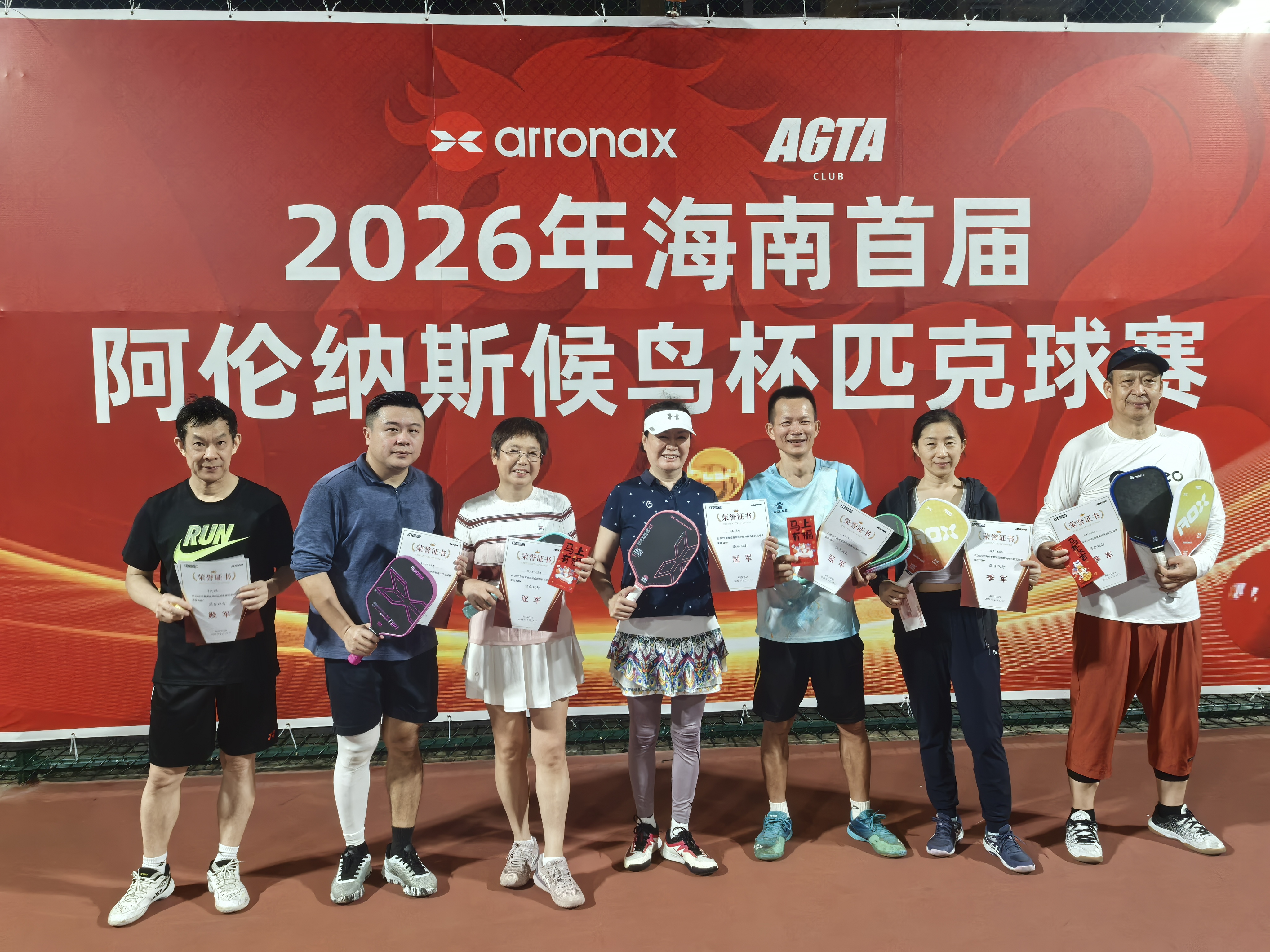 海财经·证券导报1月19日讯(记者 郭静瑜)1月17日晚,由阿伦纳斯独家冠名、海南省匹克球协会指导、海口奥林匹克花园AGTA CLUB承办的2026年海南首届阿伦纳斯候鸟杯匹克球赛在海口奥林匹克花园AGTA CLUB圆满收官。来自全国各地的80余名“候鸟”匹克球爱好者与海南本土选手同场竞技,以球会友,展现了昂扬向上的运动风采。