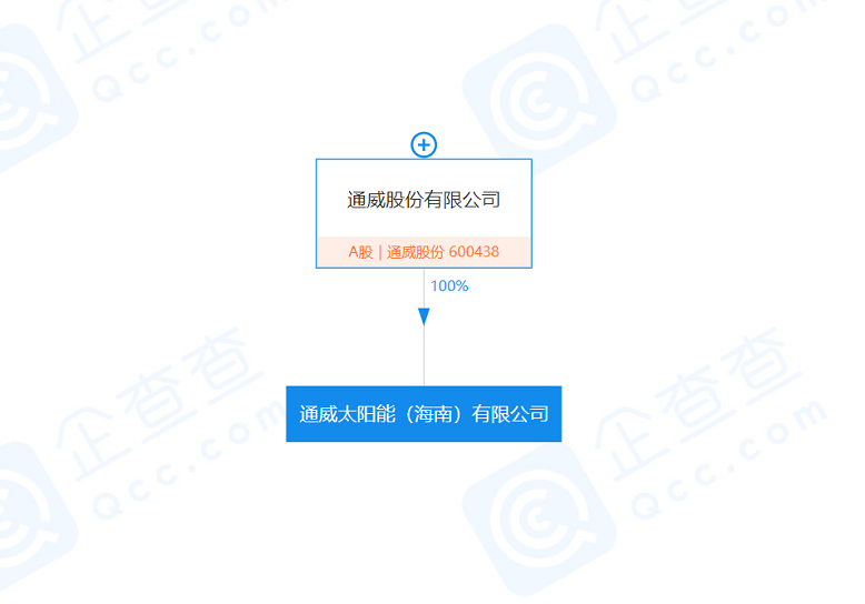 股权穿透信息显示,该公司由通威股份(600438)100%控股。