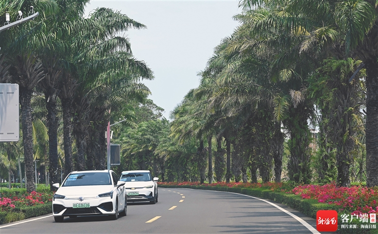 新能源车辆行驶在博鳌东屿岛零碳示范区内。资料图