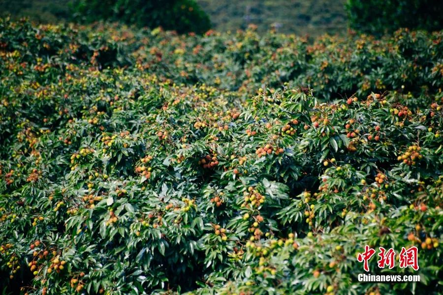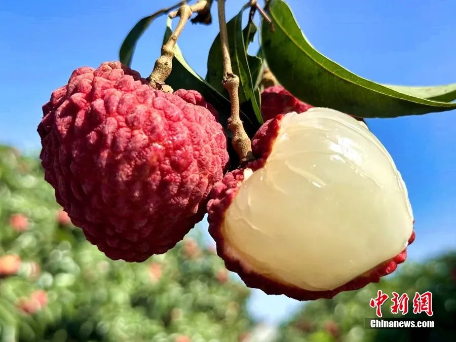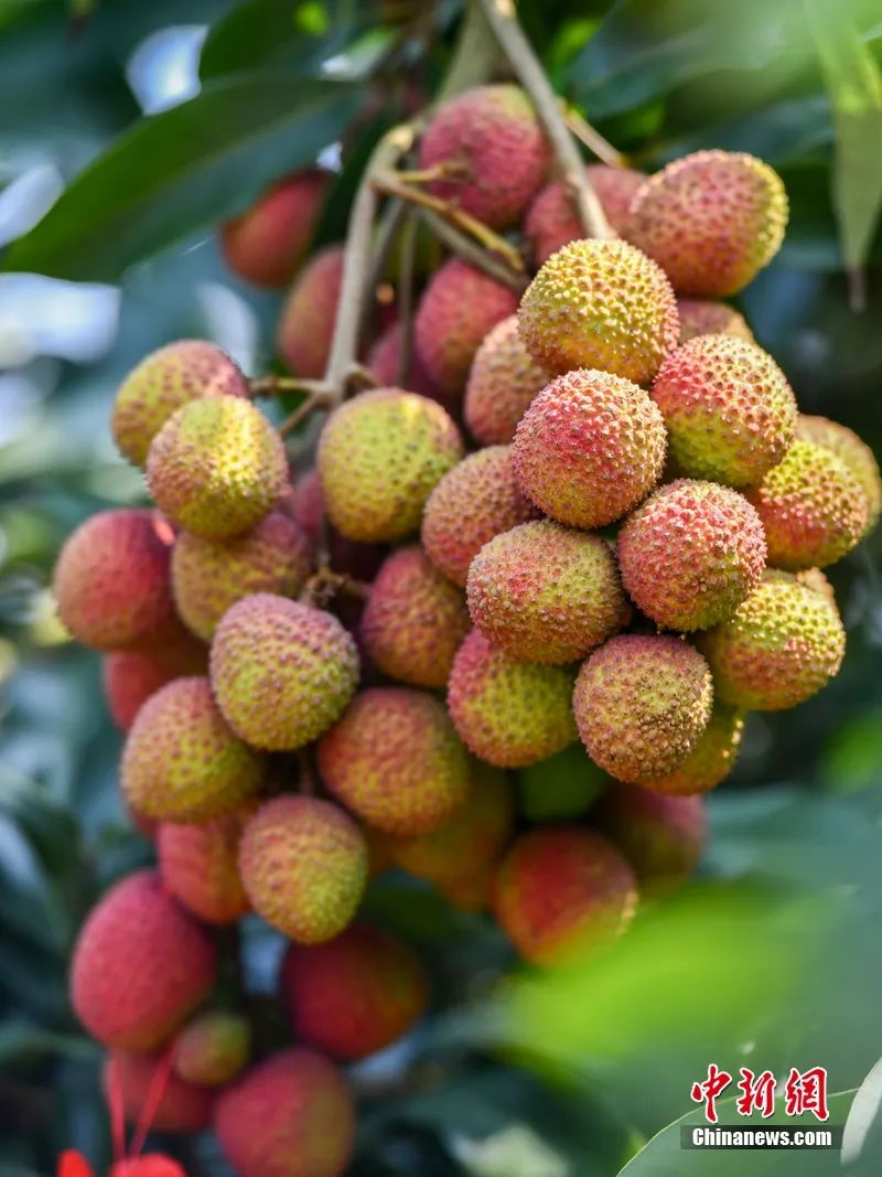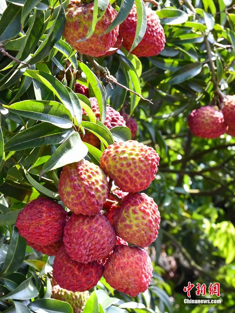 海口火山荔枝园迎丰收,红果绿叶相映成趣,累累硕果垂枝头,尽显热带果园的甜蜜盛景。凌楠 摄