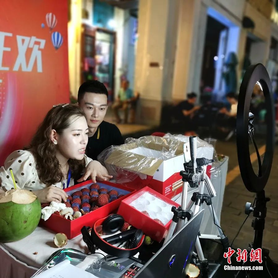 资料图为主播给海口火山荔枝带货现场。黄艺 摄