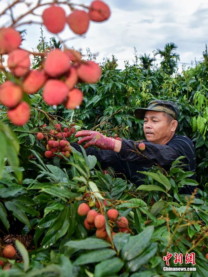 图为果农林大叔正在自家果园采摘荔枝。骆云飞 摄