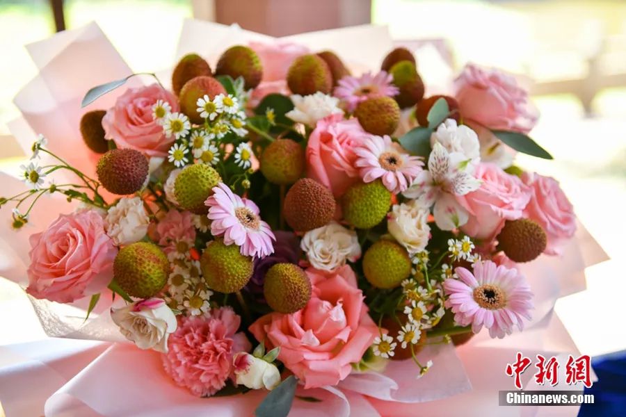 图为刚摘下的海口火山荔枝王,红艳饱满的果实缀着翠绿枝叶,新鲜得仿佛还带着晨露。凌楠 摄