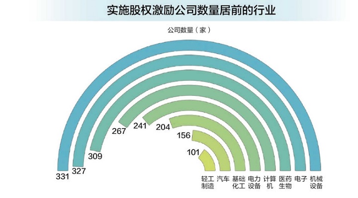 从行业来看,实施股权激励的上市公司主要集中在科技成长板块,如机械设备、电子、医药生物等行业均有超过300家公司,计算机、电力设备等行业则有超过200家公司。