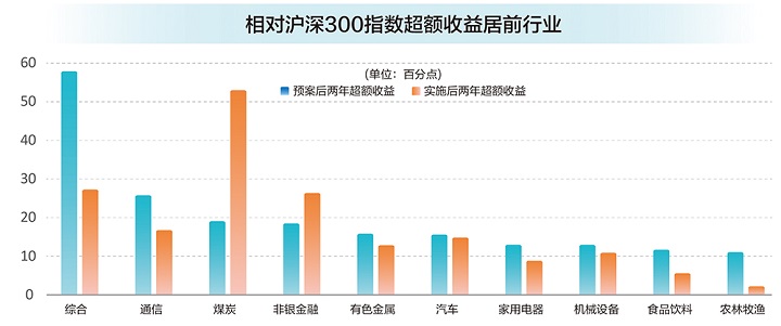从长期视角观察,成长、红利板块表现较好,在发布预案后两年,通信、煤炭、非银金融和有色金属等行业超额收益居前,而石油石化、商贸零售和房地产等由于行业原因,长期的超额收益为负。这也反映了股权激励带来的超额收益,与行业的发展状况密切相关。
