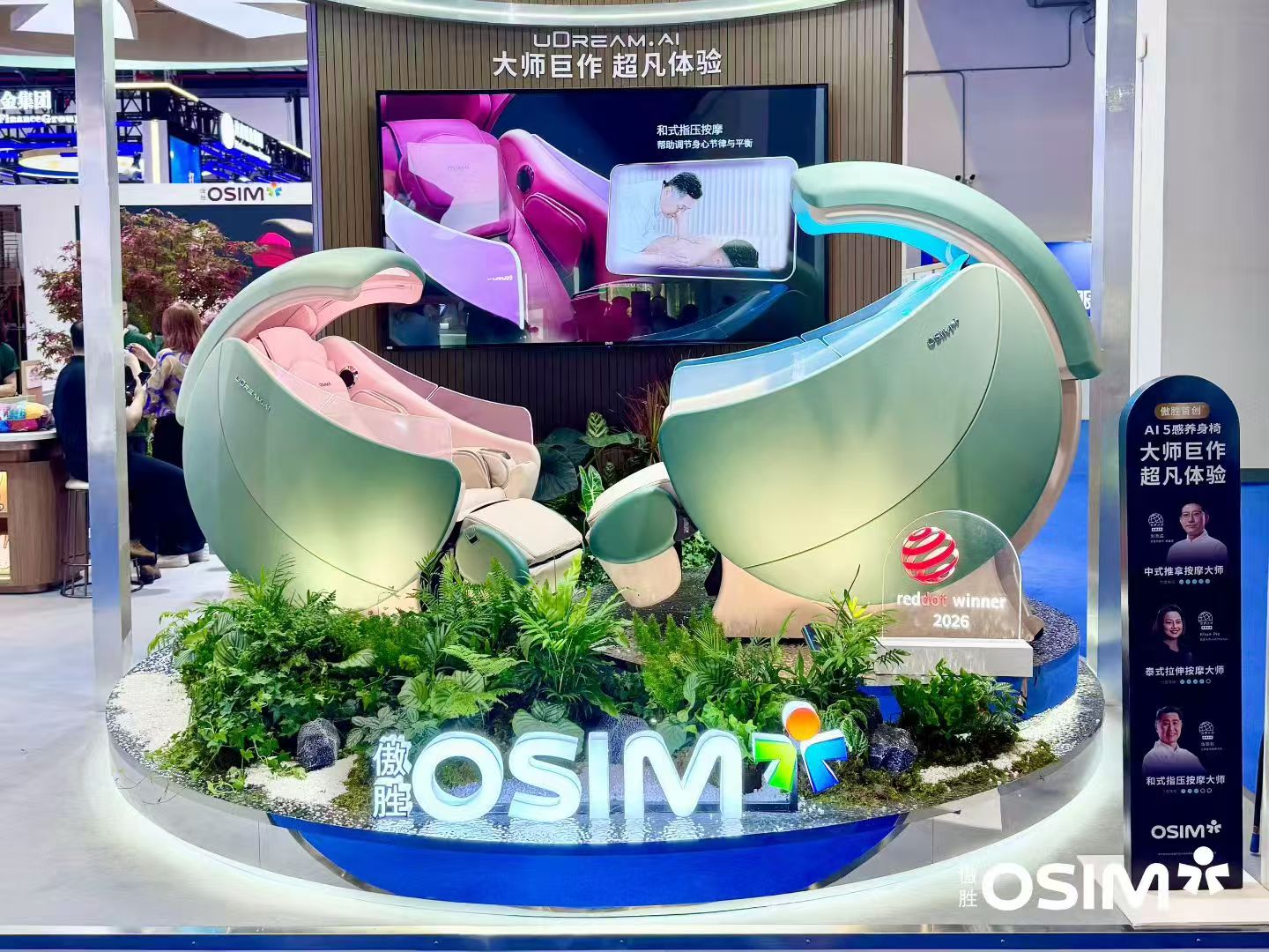 蔡怡平:今年我们重点带来了两款年度重磅新品,都刚刚拿到了2026年红点设计大奖。第一款是uDream AI五感养身椅,这是我们养身科技2.0时代的标志性产品,融合了中式推拿、泰式拉伸、和式指压三大传统按摩流派的大师手法,体验感非常接近真人按摩。